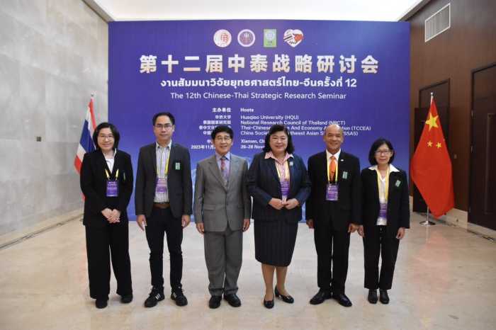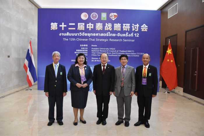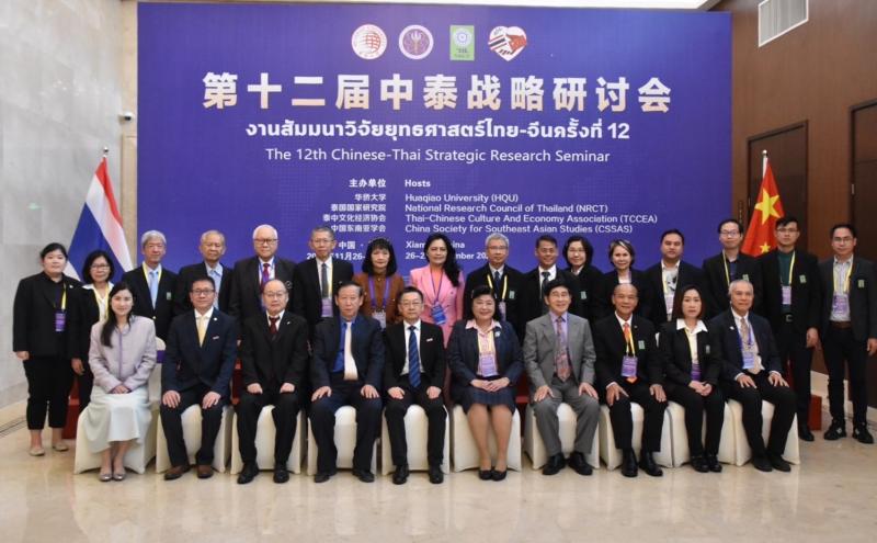 มหาวิทยาลัยหัวเฉียว (Huaqiao University) แห่งสาธารณรัฐประชาชนจีน ร่วมกับ สำนักงานการวิจัยแห่งชาติ(วช.) กระทรวงการอุดมศึกษา วิทยาศาสตร์ วิจัยและนวัตกรรม พร้อมด้วย สมาคมวัฒนธรรมและเศรษฐกิจไทย-จีน และสมาคมจีนเพื่อการศึกษาเอเชียตะวันออกเฉียงใต้ (China Society for Southeast Asian Studies) จัดการสัมมนาวิจัยยุทธศาสตร์ไทย-จีน ครั้งที่ 12” (The 12th Thai – Chinese Strategic Research Seminar) ภายใต้หัวข้อเรื่อง “ร่วมสร้างประชาคมจีน-ไทยที่มีอนาคตร่วมกันในยุคใหม่ (Jointly Building a China-Thailand Community with a Shared Future in the New Era)” ระหว่างวันที่ 26-27 พฤศจิกายน 2566 ณ มหาวิทยาลัยหัวเฉียว เมืองเซี่ยเหมิน มณฑลฝูเจี้ยน สาธารณรัฐประชาชนจีน