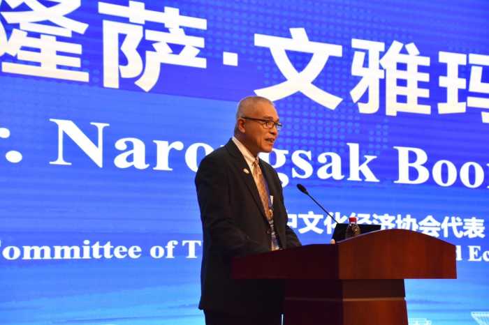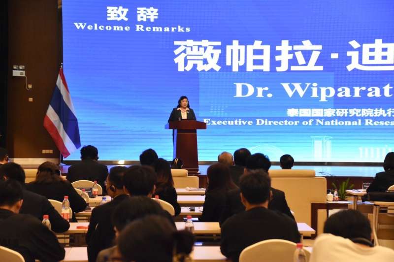 ในพิธีเปิดการสัมมนา ดร.วิภารัตน์ ดีอ่อง ผู้อำนวยการสำนักงานการวิจัยแห่งชาติ และ Professor Xu Xipeng เลขาธิการคณะกรรมการพรรคคอมมิวนิสต์ แห่งมหาวิทยาลัยหัวเฉียว พร้อมด้วย ดร.ณรงค์ศักดิ์ บุณยมาลิก กรรมการบริหารสมาคมวัฒนธรรมและเศรษฐกิจไทย-จีน ร่วมกล่าวสุนทรพจน์ในการกล่าวเปิดการสัมมนา