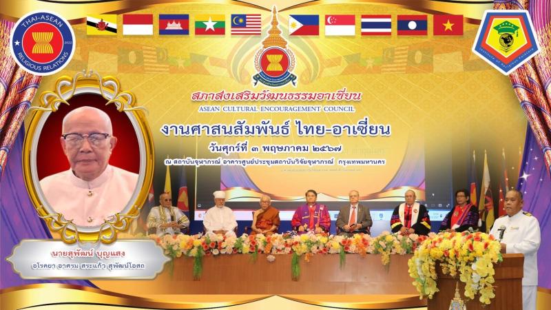 สภาส่งเสริมวัฒนธรรมอาเซียนจัดงานศาสนสัมพันธ์ ไทย-อาเซียน เมื่อวันที่ 3 พฤษภาคม 2567 ณ อาคารศูนย์ประชุมสถาบันวิจัยจุฬาภรณ์ เชิญผู้ทรงคุณวุฒิด้านศาสนาทั้งพุทธ คริสต์ อิสลาม ฮินดู ซิกซ์ เข้าร่วมเสวนา ในประเด็นการสร้างสัมพันธ์อันดีระหว่างศาสนา และการนำหลักธรรมคำสอนของศาสนาที่แตกต่างกันมาใช้ในชีวิตประจำวันเพื่อการอยู่ร่วมกันอย่างสันติ ซึ่งเป็นกิจกรรมต่อเนื่องที่จัดขึ้นเป็นครั้งที่สาม โดยในครั้งนี้มีผู้สนใจเข้าร่วมงานเป็นจำนวนมาก