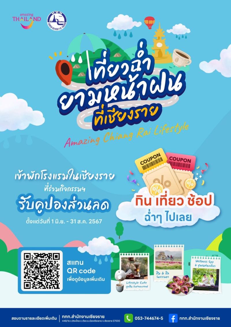 E-coupon และสิทธิพิเศษมากมาย จากผู้ประกอบการโรงแรม ร้านอาหาร คาเฟ่ สปา กิจกรรมท่องเที่ยวในชุมชน ในจังหวัดเชียงราย-พะเยา รวมกว่า 100 แห่ง ในช่วงเดือนมิถุนายน-สิงหาคม 2567