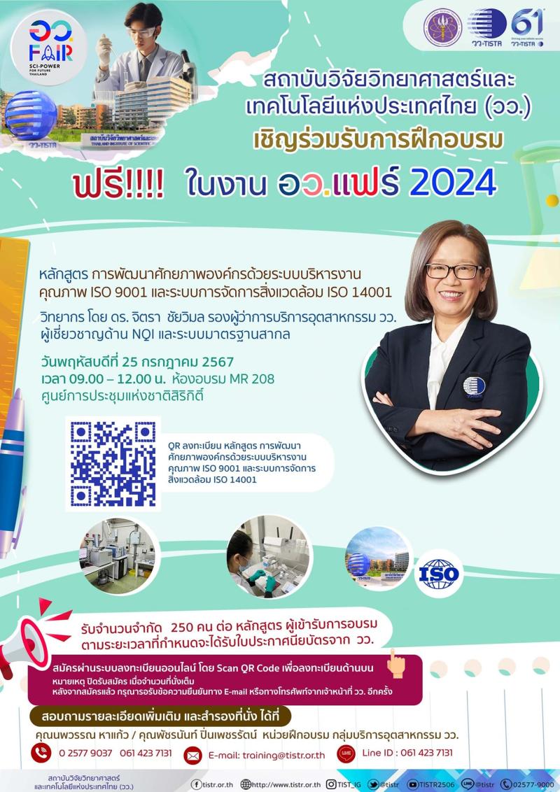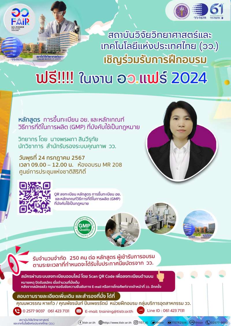 วว. เชิญชวนอบรมฟรี ! ISO 9001 /การขึ้นทะเบียน อย. / สร้างอาชีพ ในงาน อว. แฟร์ 2024
