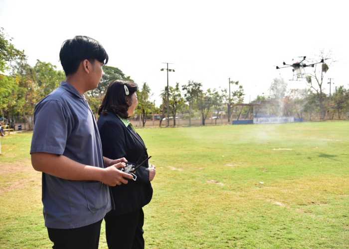 อาจารย์พิศิษฐ์ มิตรเกื้อกูล หัวหน้าโครงการ กล่าวว่า การนำเทคโนโลยีโดรนมาใช้ในการเกษตรเป็นแนวทางสำคัญในการเพิ่มประสิทธิภาพการผลิต โดยศูนย์บริการฯ จะมีการอบรมเกี่ยวกับการฝึกบินโดรนในพื้นที่รวมถึงการลงพื้นที่จริงเพื่อฝึกให้สามารถบินโดรนในพื้นที่จริง โดยใช้โดรนขนาดใหญ่ที่มีเรดาร์ป้องกันการชน เพิ่มฟังก์ชันใส่ถังในการหว่านเมล็ดและยาฆ่าแมลงต่าง ๆ และการบริการให้กับเกษตรกรในการพ่นสารเคมียาฆ่าแมลงโดยใช้โดรน ซึ่งช่วยลดระยะเวลาและแรงงานในกระบวนการผลิต อีกทั้งยังช่วยให้เกษตรกรสามารถปรับใช้เทคโนโลยีให้เหมาะสมนับเป็นก้าวสำคัญในการพัฒนาเกษตรกรรมสู่ความยั่งยืนในอนาคต