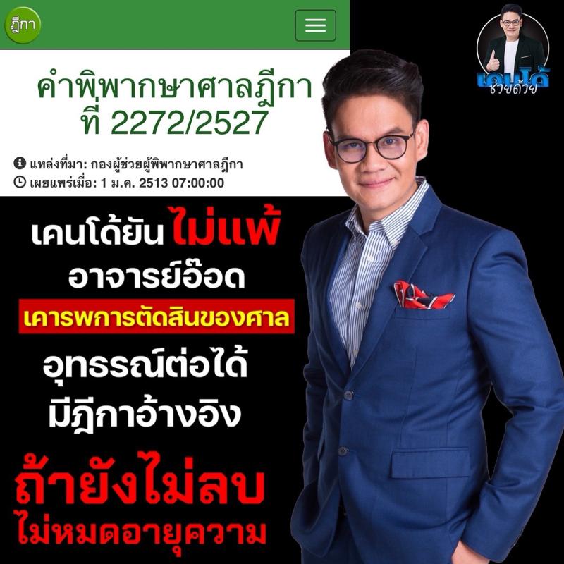 สรุปข่าวที่บอกว่าเคนโดัแพ้คดี ไม่เป็นความจริง