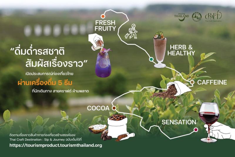 การท่องเที่ยวแห่งประเทศไทย (ททท.) สร้างสรรค์โครงการ "Thai Craft Destination: Sip & Journey" มุ่งส่งเสริมการท่องเที่ยวเชิงประสบการณ์ และเป็นมิตรกับสิ่งแวดล้อม โดยเน้นเล่าเรื่องของวัตถุดิบท้องถิ่นและความพิถีพิถันจากผู้ผลิต ภายใต้แนวคิด "ดื่มด่ำรสชาติ สัมผัสเรื่องราว" ผ่านเครื่องดื่ม 5 ธีม ที่นักเดินทางสายคราฟต์ไม่ควรพลาด ได้แก่ Fresh Fruity, Herb & Healthy, Caffeine, Cocoa และ Sensation ที่เปิดโอกาสให้เหล่านักเดินทางได้สัมผัสกับวิถีชีวิต เรื่องราวของชุมชน และรับประสบการณ์ความรู้จากการลงมือปฏิบัติจริง (Hands-on Experience)