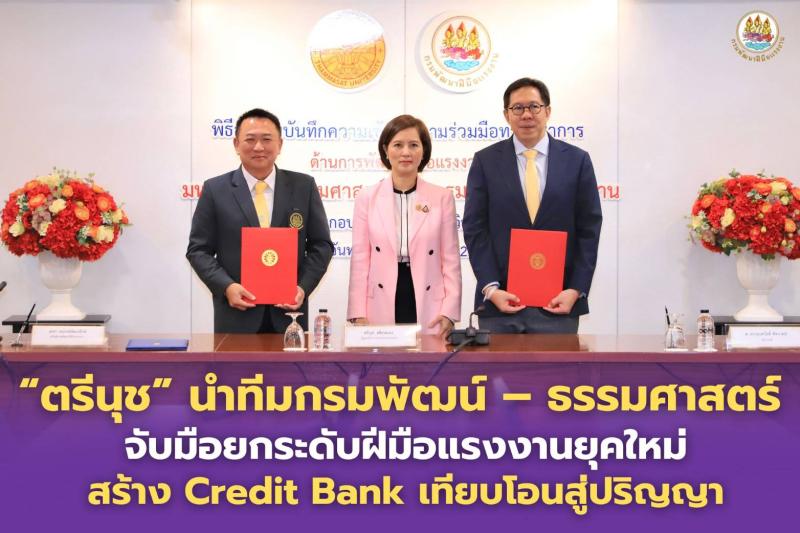 “ตรีนุช” นำทีมกรมพัฒน์ – ธรรมศาสตร์ จับมือยกระดับฝีมือแรงงานยุคใหม่ สร้าง Credit Bank เทียบโอนสู่ปริญญา