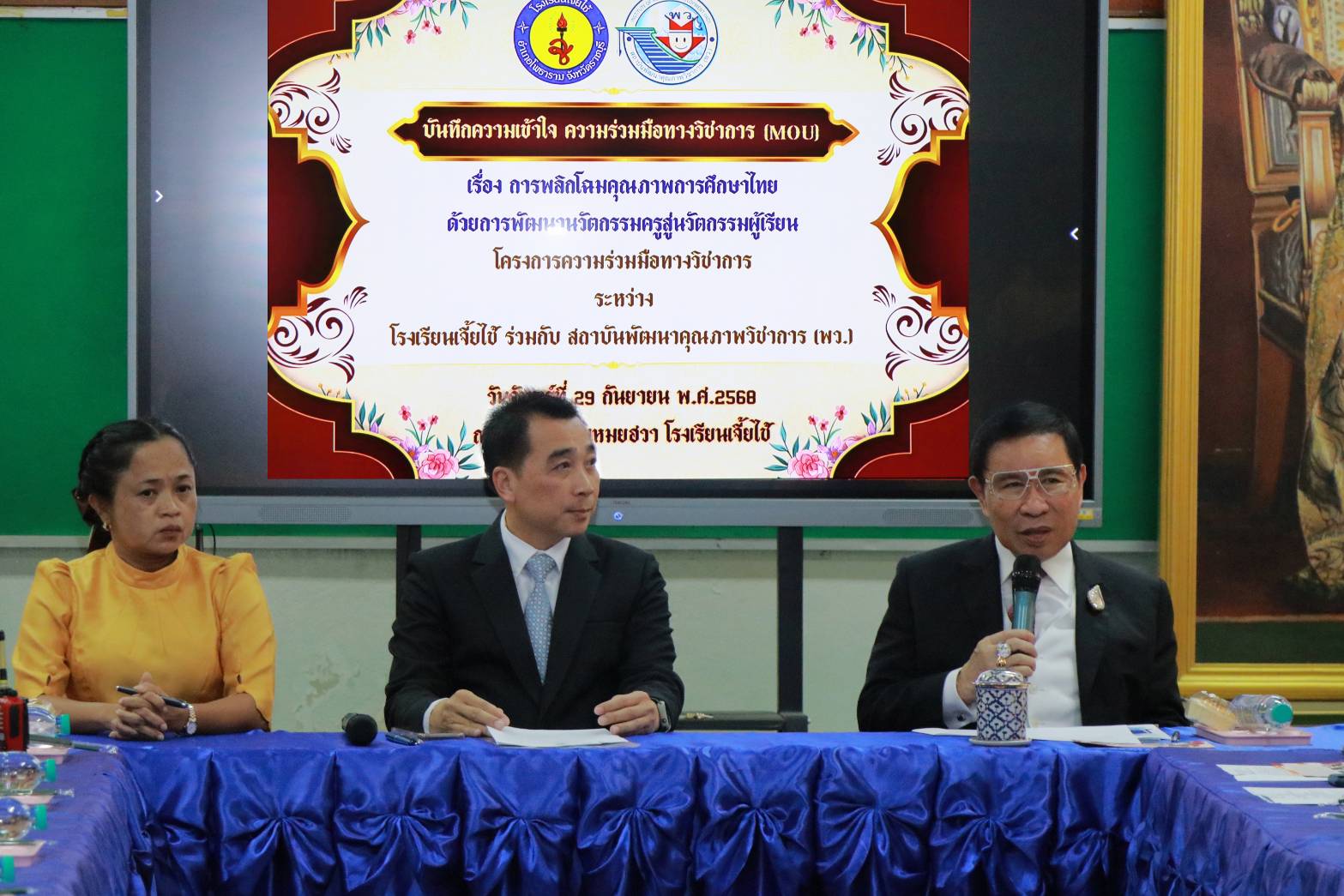 พิธีลงนามบันทึกความเข้าใจ ความร่วมมือทางวิชาการ (MOU) การพลิกโฉมคุณภาพการศึกษาไทยด้วยการพัฒนานวัตกรรมครูสู่นวัตกรรมผู้เรียน โครงการความร่วมมือทางวิชาการ ระหว่าง โรงเรียนเจี้ยไช้ ร่วมกับ สถาบันพัฒนาคุณภาพวิชาการ (พว.)