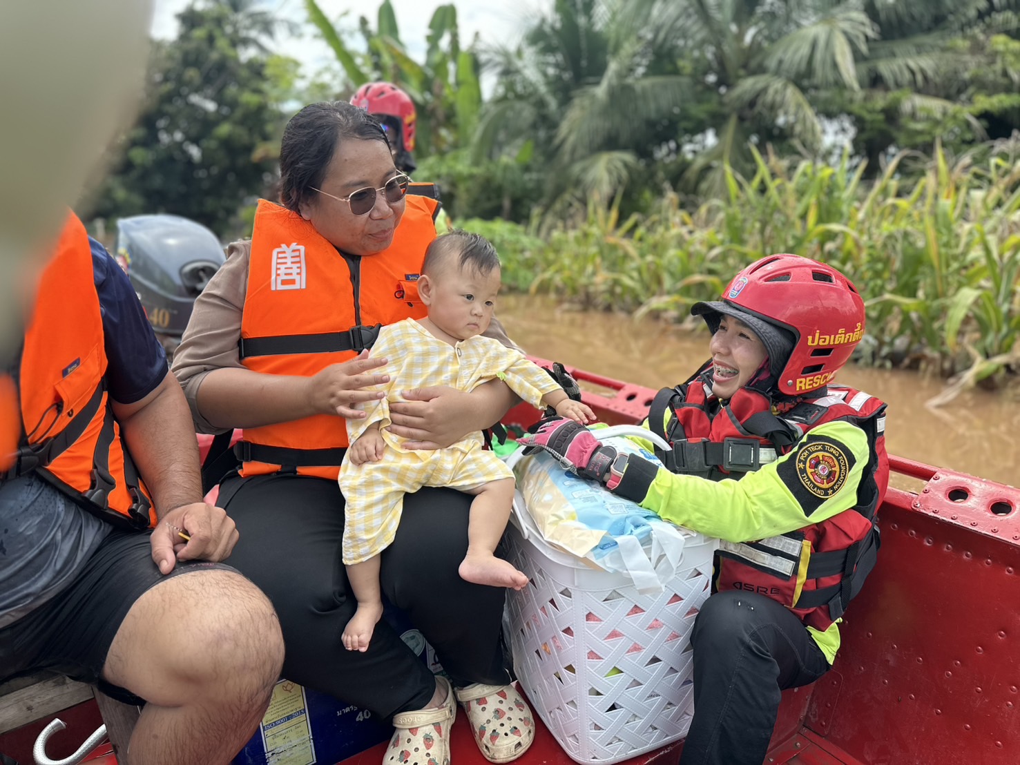 โดยทีมบรรเทาสาธารณภัย นำกำลังเจ้าหน้าที่กู้ชีพกู้ภัยเคลื่อนย้ายคุณยายซึ่งเป็นผู้ป่วยติดเตียงมาไว้ในพื้นที่ปลอดภัย
