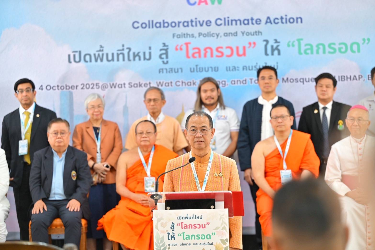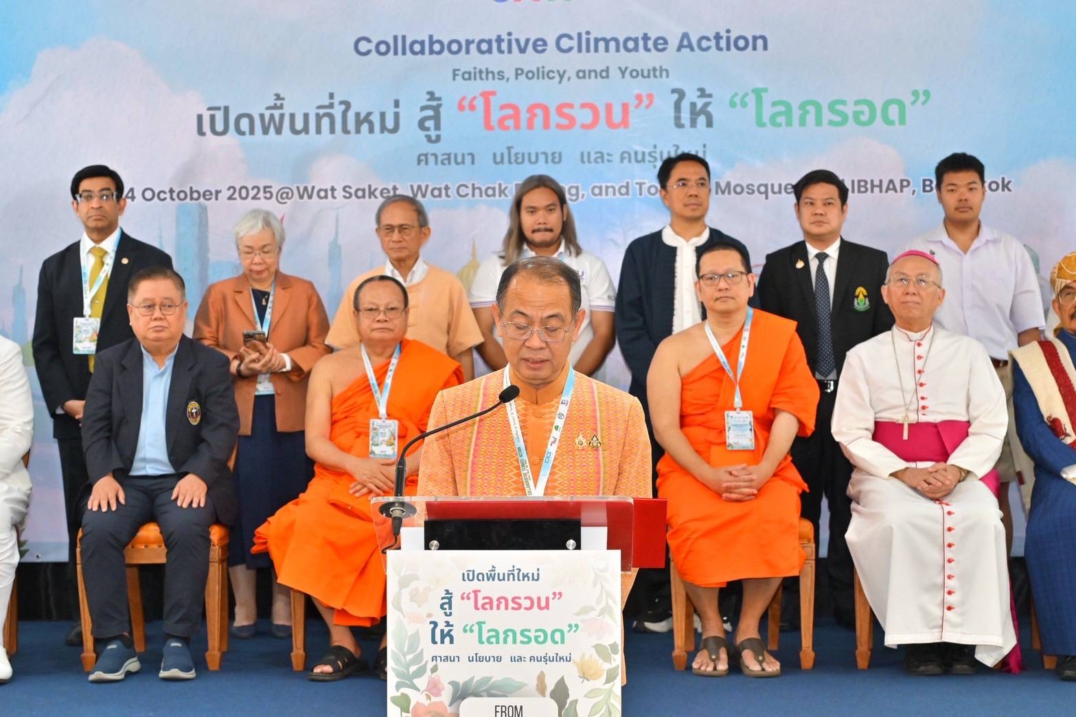 นอกจากนี้ ภายในงานยังได้รับเกียรติจากผู้นำศาสนาทั้ง 5 ศาสนา ได้แก่ ศาสนาพุทธ ศาสนาอิสลาม ศาสนาคริสต์ ศาสนาพราหมณ์–ฮินดู และศาสนาซิกข์ ร่วมประกาศเจตนารมณ์ “พลังศาสนา วัฒนธรรม นำสู้โลกรวน ให้โลกรอด” แสดงวิสัยทัศน์ผสานหลักคำสอนศาสนากับการแก้ปัญหาสิ่งแวดล้อม เพื่อสร้างความร่วมมือระหว่างศาสนาและสังคมไทยในการก้าวผ่านวิกฤตครั้งนี้ พร้อมทั้งเวทีเสวนาร่วม ระหว่างนักวิชาการด้านสิ่งแวดล้อม ผู้นำนโยบาย และเครือข่ายเยาวชน ภายใต้แนวคิด “ศรัทธา–นโยบาย–การลงมือทำ” พร้อมจัดนิทรรศการและนำเสนอนวัตกรรมสิ่งแวดล้อมโดยคนรุ่นใหม่ เพื่อสะท้อนบทบาทของเยาวชนในการเป็น “ผู้นำการเปลี่ยนแปลง”