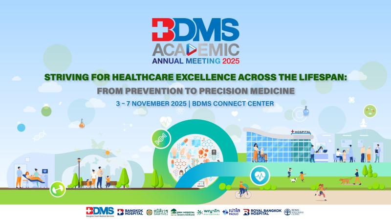 บริษัท กรุงเทพดุสิตเวชการ จำกัด (มหาชน) หรือ BDMS ขอเชิญชวนแพทย์ ทันตแพทย์ พยาบาล เภสัชกร นักรังสีเทคนิค นักกายภาพบำบัด นักกิจกรรมบำบัด บุคลากรทางการแพทย์และผู้สนใจ เข้าร่วมงานประชุมวิชาการ BDMS Academic Annual Meeting 2025 ระหว่างวันที่ 3-7 พฤศจิกายน 2568 ณ BDMS Connect Center รับฟังการบรรยายทางวิชาการและแลกเปลี่ยนความรู้ที่น่าสนใจในหัวข้อต่าง ๆ ของแต่ละสาขาวิชาชีพ และ AI in Medicine