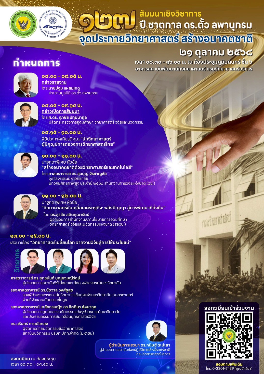 กรมวิทยาศาสตร์บริการ ขอเชิญร่วมสัมมนาเชิงวิชาการ “127 ปี ชาตกาล ดร.ตั้ว ลพานุกรม” ย้อนรำลึกผู้บุกเบิกงานวิทยาศาสตร์ไทย “จุดประกายวิทยาศาสตร์ สร้างอนาคตชาติ”