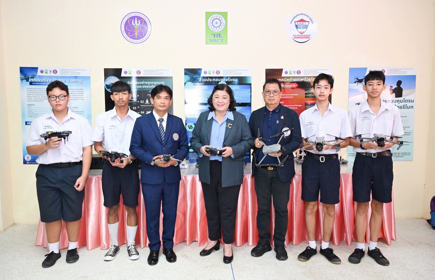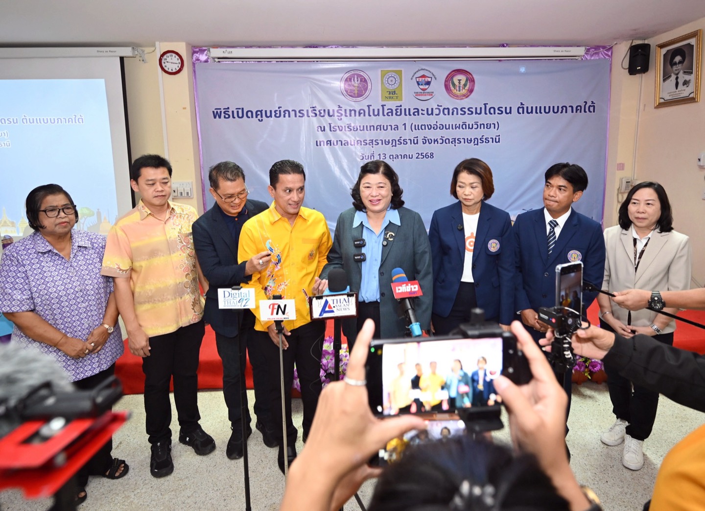 วันที่ 13 ตุลาคม 2568 สำนักงานการวิจัยแห่งชาติ (วช.) กระทรวงการอุดมศึกษา วิทยาศาสตร์ วิจัยและนวัตกรรม โดย ดร.วิภารัตน์ ดีอ่อง ผู้อำนวยการสำนักงานการวิจัยแห่งชาติ เป็นประธานในพิธีเปิด "ศูนย์การเรียนรู้เทคโนโลยีและนวัตกรรมโดรน ต้นแบบภาคใต้" ในการนี้ได้รับเกียรติจาก นายทัศนัย เรืองนุ้ย รองนายกเทศมนตรีนครสุราษฎร์ธานี นายนิวัฒน์ กู้เขียว ผู้อำนวยการโรงเรียนเทศบาล 1 สุราษฎร์ธานี (แตงอ่อนเผดิมวิทยา) คณะผู้ทรงคุณวุฒิจาก วช. และ อาจารย์พิศิษฐ์ มิตรเกื้อกูล นายกสมาคมกีฬาเครื่องบินจำลองและวิทยุบังคับ พร้อมด้วยผู้บริหารสถานศึกษาในพื้นที่ ให้การต้อนรับ ณ โรงเรียนเทศบาล 1 สุราษฎร์ธานี (แตงอ่อนเผดิมวิทยา) จังหวัดสุราษฎร์ธานี