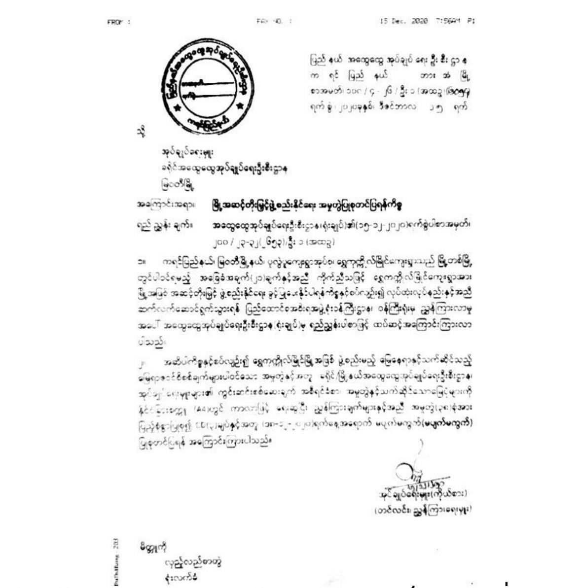 (การก่อตั้งพื้นที่กักกัน สถานีป้องกันการแพร่ระบาก และสิ่งของช่วยเหลือในการต่อต้านโรคระบาดรวมมูลค่า 396 ล้านจ๊าดเมียนมาร์ในช่วงโรคระบาด)