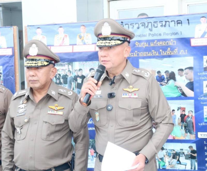 พล.ต.ท.วัฒนา ยี่จีน ผบช.ภ.1 แถลงข่าวกวาดล้างเว็บพนันออนไลน์ และ ปราบสแกมเมอร์ ยึดเงินสดทรัพย์สินกว่า 20 ล้านบาท