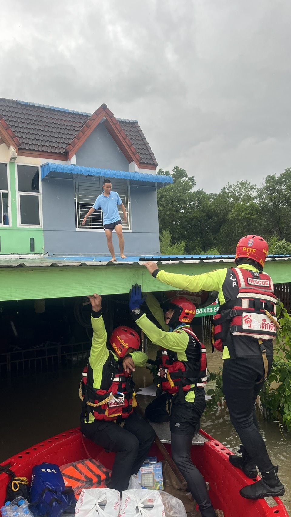 มูลนิธิป่อเต็กตึ๊ง โดยทีมบรรเทาสาธารณภัย รวม 50 นาย พร้อมอุปกรณ์กู้ภัย กู้ชีพ รถกู้ภัย กู้ชีพยกสูง 4x4 ยังคงเร่งลุยเข้าพื้นที่ อพยพผู้ประสบภัยน้ำท่วมชาวหาดใหญ่ ประกอบอาหารปรุงสุกแจกจ่ายอาหารกล่องพร้อมน้ำดื่ม เสื้อชูชีพ ยาสามัญประจำบ้าน และอาหารสุนัขและแมวต่อเนื่อง