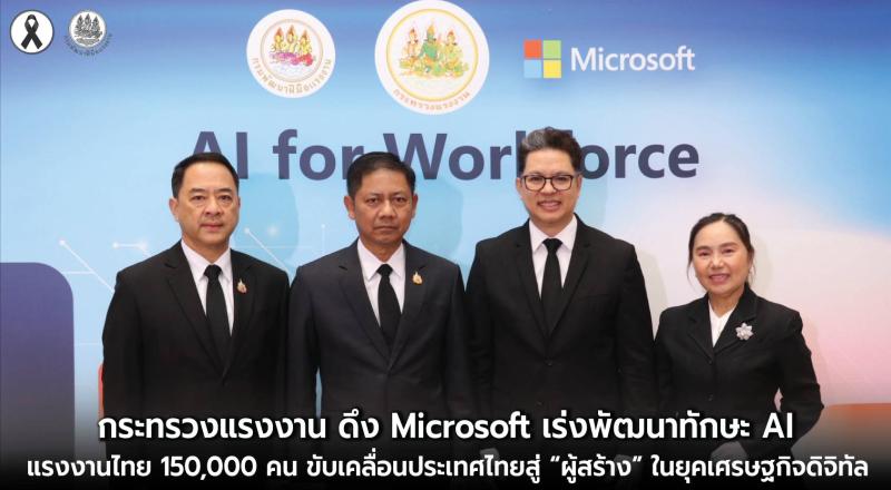 กระทรวงแรงงาน ดึง Microsoft เร่งพัฒนาทักษะ AI แรงงานไทย 150000 คน ขับเคลื่อนประเทศไทยสู่ “ผู้สร้าง” ในยุคเศรษฐกิจดิจิทัล