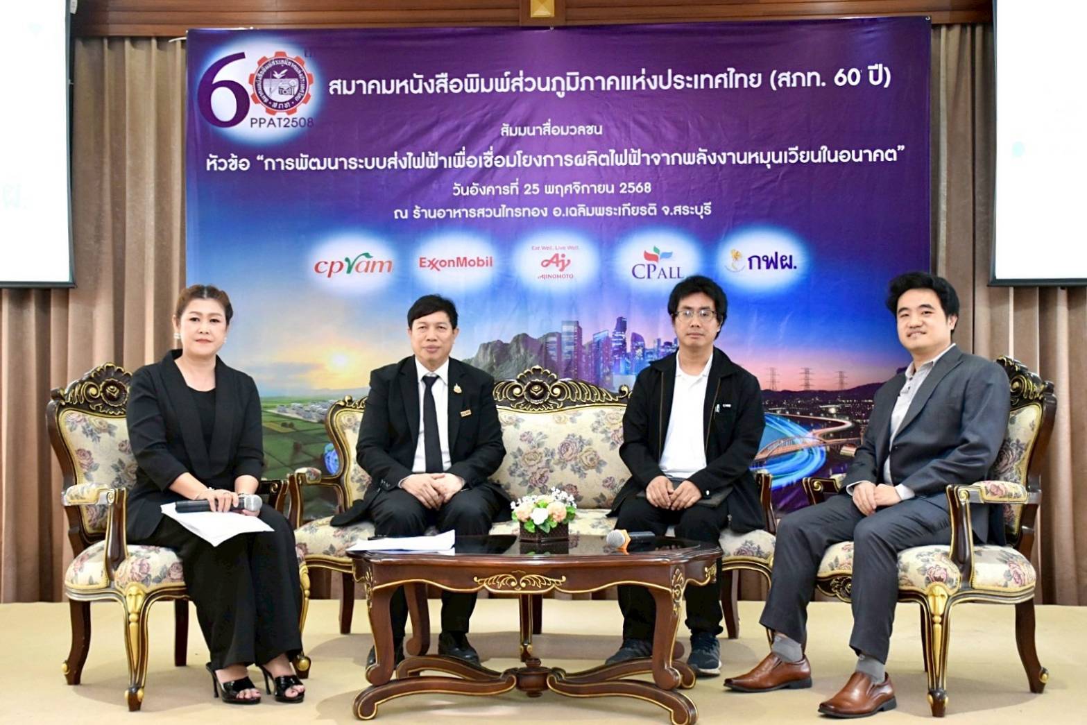 ด้าน นายอนันต์ นิลมานนท์ นายกสมาคมหนังสือพิมพ์ส่วนภูมิภาคแห่งประเทศไทย กล่าวว่า “การสัมมนาครั้งนี้ถือเป็นเวทีสำคัญในการให้ความรู้ด้านพลังงาน ความมั่นคงของระบบไฟฟ้า และพลังงานหมุนเวียนแก่สื่อมวลชนจังหวัดสระบุรี ซึ่งจะช่วยให้สามารถนำข้อมูลที่ถูกต้องและรอบด้านไปเผยแพร่สู่ประชาชนในพื้นที่ พร้อมทั้งเสริมศักยภาพของสื่อมวลชนในการเป็นสะพานข้อมูลเชื่อมระหว่างหน่วยงานรัฐ ภาคอุตสาหกรรม และประชาชน เพื่อสนับสนุนการพัฒนาจังหวัดสระบุรีอย่างมั่นคงและยั่งยืนต่อไป สำหรับการสัมมนาสื่อมวลชนในครั้งนี้ ต้องขอขอบคุณ คุณศิริลักษณ์ พูนทอง ผู้จัดการร้านอาหาร สวนไทรทอง จ.สระบุรี ที่ให้การสนับสนุนสถานที่และการบริการอย่างดียิ่ง”