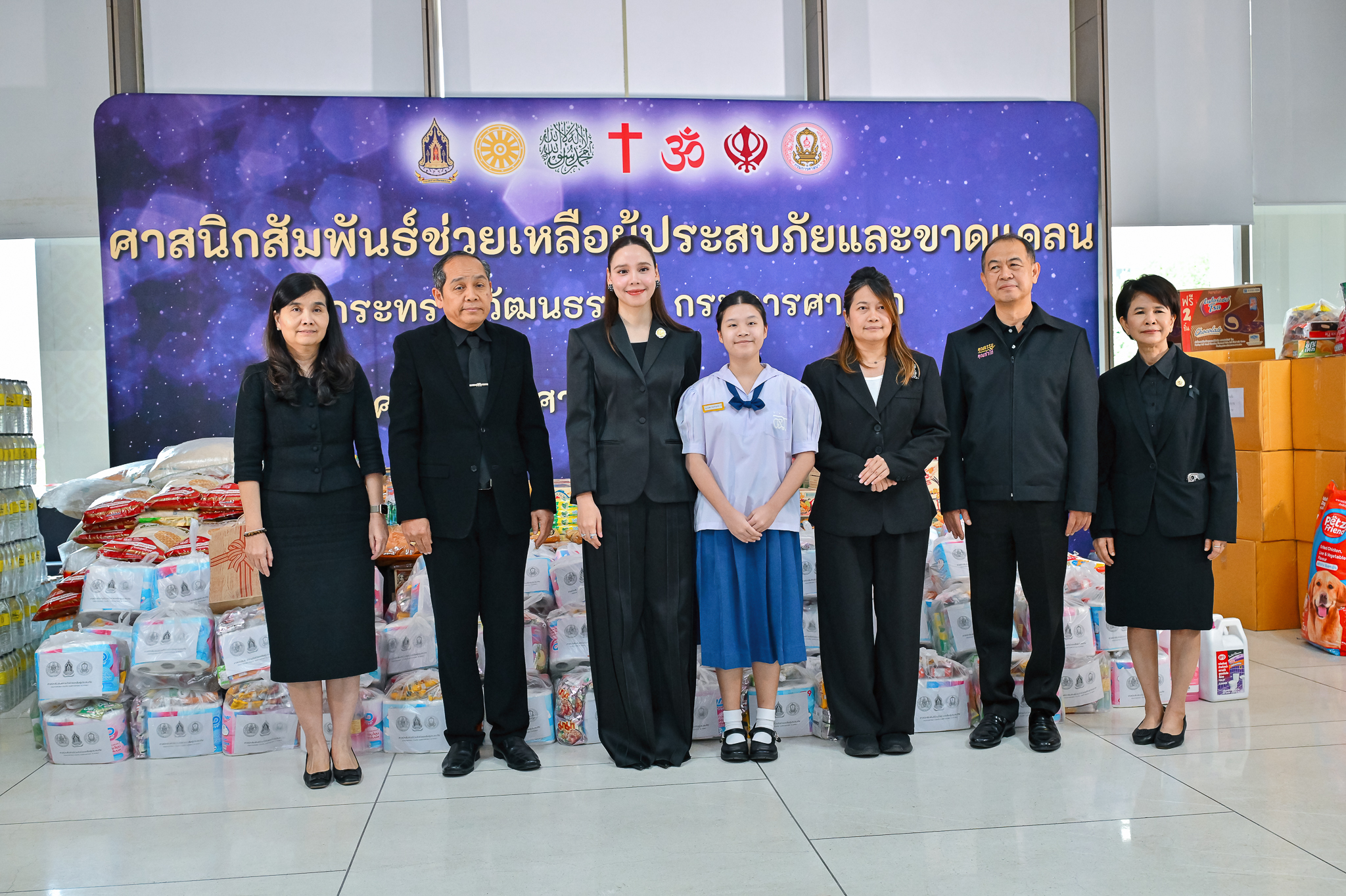 วันพฤหัสบดีที่ 27 พฤศจิกายน 2568 เวลา 13.30 น. กระทรวงวัฒนธรรม โดยกรมการศาสนา จัดพิธีรับมอบเครื่องอุปโภค บริโภค และของใช้จำเป็น ภายใต้กิจกรรม “ศาสนิกสัมพันธ์ร่วมใจช่วยเหลือผู้ประสบอุทกภัยในพื้นที่ภาคใต้” โดยมีนางสาวซาบีดา ไทยเศรษฐ์ รัฐมนตรีว่าการกระทรวงวัฒนธรรม เป็นประธาน พร้อมด้วยนายประสพ เรียงเงิน ปลัดกระทรวงวัฒนธรรม นายชัยพล สุขเอี่ยม อธิบดีกรมการศาสนา คณะผู้บริหาร ผู้แทนองค์การศาสนาทั้ง 15 องค์การ รวมถึงผู้มีจิตศรัทธา เข้าร่วม ณ โถงชั้น 1 อาคารวัฒนธรรมวิศิษฏ์