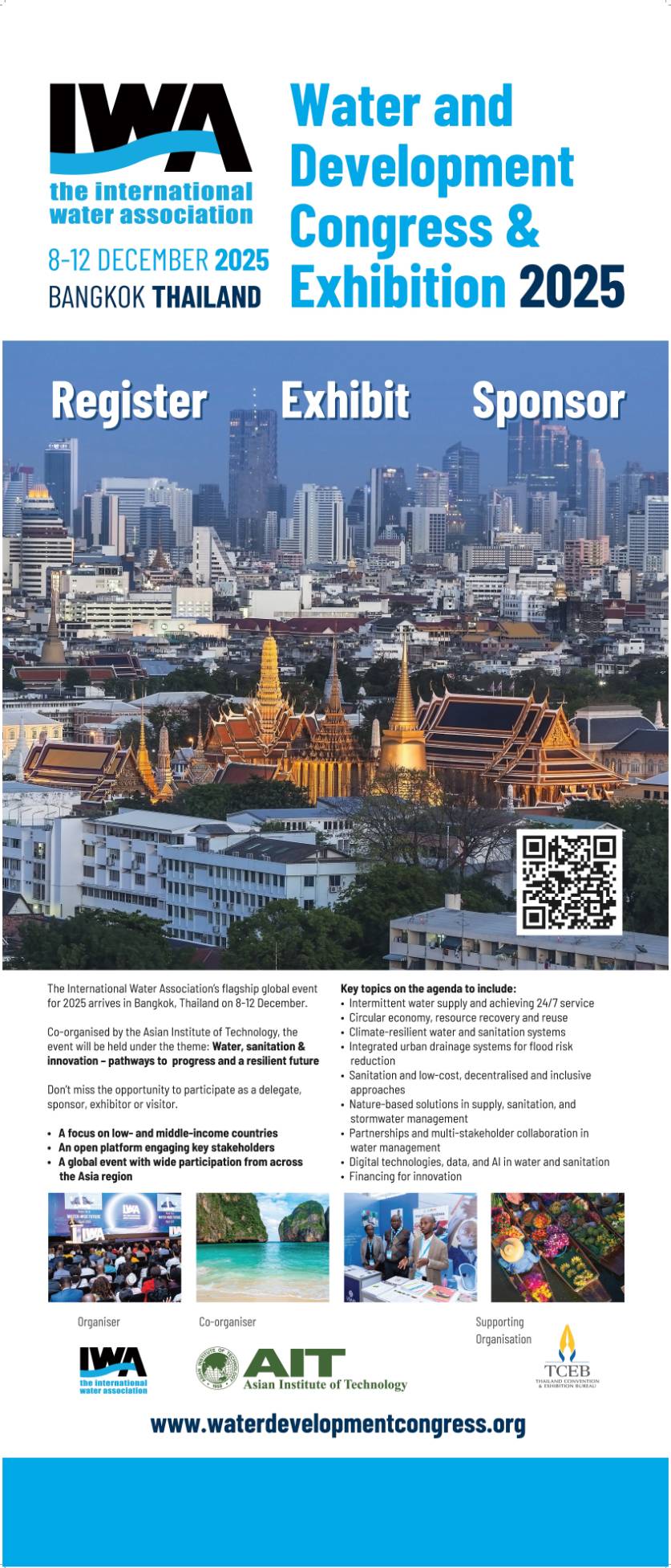งานนี้จัดโดย International Water Association (IWA) ร่วมกับ Asian Institute of Technology (AIT) โดยได้รับการสนับสนุนจากหน่วยงานพันธมิตรทั้งในและต่างประเทศ นับเป็นหนึ่งในเวทีประชุมและแสดงนิทรรศการด้านน้ำที่ใหญ่ที่สุดของโลก ซึ่งจะถูกจัดขึ้นในประเทศไทยเป็นครั้งแรกภายใต้ธีม “Water, Sanitation & Innovation – Pathways to Progress and a Resilient Future” มุ่งเน้นนวัตกรรมเพื่อการรับมือกับความท้าทายด้านน้ำในอนาคต