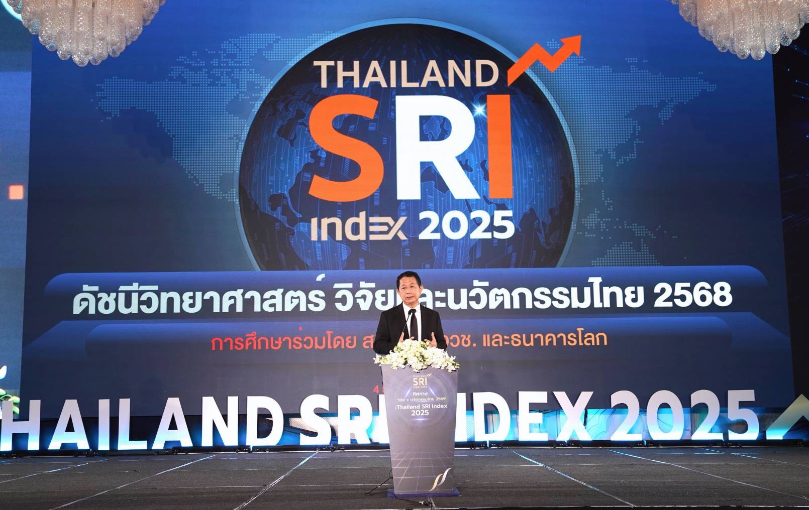 สำนักงานคณะกรรมการส่งเสริมวิทยาศาสตร์วิจัยและนวัตกรรม (สกสว.) สำนักงานสภานโยบายการอุดมศึกษา วิทยาศาสตร์ วิจัยและนวัตกรรมแห่งชาติ (สอวช.) และธนาคารโลก (World Bank) คิกออฟความร่วมมือครั้งสำคัญในงาน ‘ทิศทางวิจัย x นวัตกรรมไทย 2569 : Thailand SRI Index 2025’ มุ่งพัฒนา ‘ดัชนีระบบ ววน.ของไทย’ ให้เป็นเข็มทิศนำทางเศรษฐกิจเล่มใหม่ของประเทศ ที่ไม่เพียงกำหนดเป้าหมายการลงทุนด้านนวัตกรรมได้อย่างแม่นยำ แต่ยังเป็นเครื่องมือเชื่อมโยงยุทธศาสตร์ระหว่างภาครัฐ เอกชน และประชาคมวิจัย ให้ก้าวไปในทิศทางเดียวกัน พร้อมเปิดเวทีแลกเปลี่ยนวิสัยทัศน์ร่วมกับคณะผู้บริหารระดับสูงจากธนาคารโลกและพันธมิตรนานาชาติ เพื่อยกระดับความเชื่อมั่นและขีดความสามารถของไทยในเวทีโลก พร้อมกันนี้ ประธาน กสว. เปิดผล ‘Thailand SRI Index 2025’ ต่อเนื่องปีที่ 2 เผยดัชนีแกร่ง 7.77 พร้อมเปิดแผนปี 69 เร่งปั้นนักวิจัยรุ่นใหม่-ดึงทุนระดับโลกขับเคลื่อน ววน.ของประเทศ