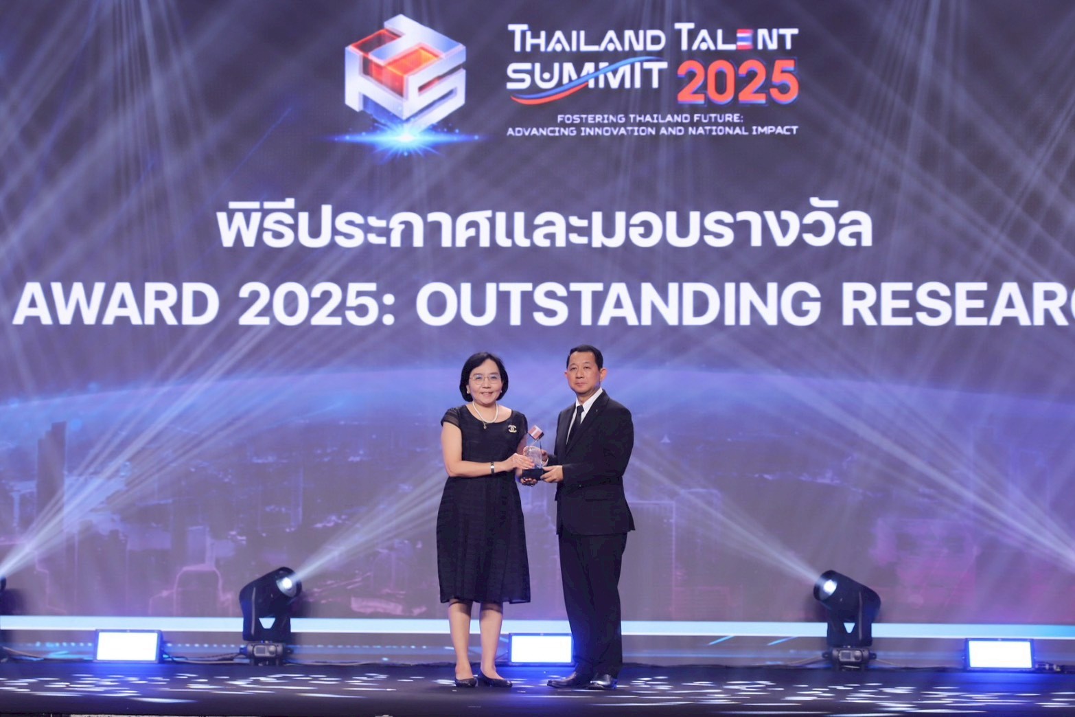 ในโอกาสนี้ วศ. ได้รับรางวัล Thailand Talent Award 2025: Outstanding Research Organization ซึ่งเป็นหนึ่งใน 10 หน่วยงานด้าน ววน. ของประเทศที่เป็นแบบอย่างด้านการบริหารจัดการงานวิจัยและนวัตกรรม มีความโดดเด่นด้านการพัฒนาศักยภาพบุคลากร การสร้างเครือข่ายความร่วมมือ และการผลักดันผลงานวิจัยสู่การใช้ประโยชน์เพื่อสร้างผลลัพธ์และผลกระทบระดับประเทศ โดยภายในงาน วศ. ได้ร่วมจัดแสดงนิทรรศการเพื่อตอกย้ำความสำเร็จในการต่อยอดงานวิจัยสู่การใช้ประโยชน์อย่างเป็นรูปธรรม ประกอบด้วย