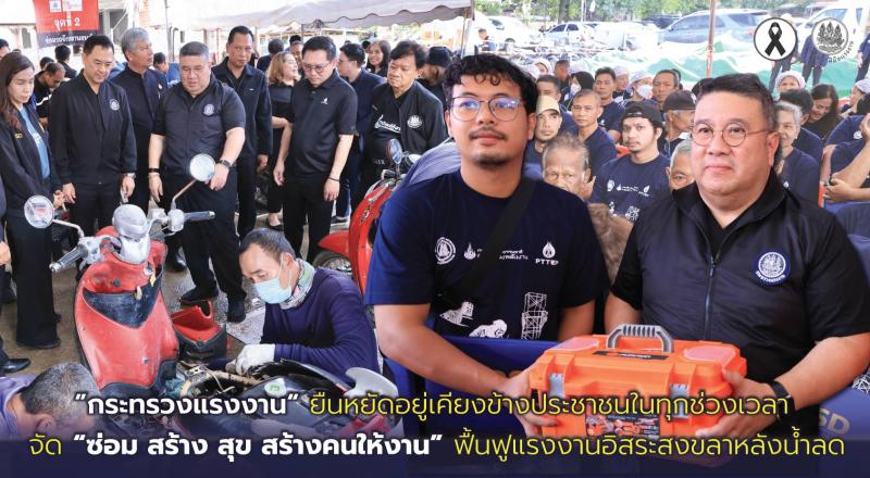 ทั้งนี้กระทรวงแรงงาน โดยกรมพัฒนาฝีมือแรงงาน ขอขอบคุณบริษัท ปตท.สำรวจและปิโตรเลี่ยม จำกัด (มหาชน) ในการบูรณาการความร่วมมือให้บริการช่วยเหลือผู้ประสบภัยกันอย่างจริงจังและสนับสนุนงบประมาณในการดำเนินกิจกรรมครั้งนี้และขอบคุณทีมช่างจิตอาสา ทีมช่างในหน่วยงานสังกัดกรมพัฒนาฝีมือแรงงาน ผู้ต้องขังจากเรือนจำกลางสงขลา และผู้ต้องขังจากทัณฑสถานบำบัดพิเศษสงขลา ที่ร่วมกันช่วยเหลือพี่น้องประชาชนที่ได้รับผลกระทบจากสถานการณ์อุทกภัยภาคใต้ในครั้งนี้ และหวังเป็นอย่างยิ่งว่าผู้ที่ได้รับผลกระทบจากสถานการณ์อุทกภัย ได้นำอุปกรณ์เครื่องใช้ไฟฟ้า เครื่องยนต์เล็กเพื่อการเกษตร และรถจักรยานยนต์ กลับไปใช้ในการประกอบอาชีพต่อไป