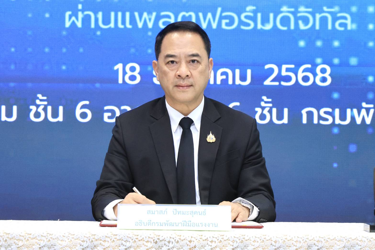 วันที่ 18 ธันวาคม 2568 กรมพัฒนาฝีมือแรงงาน จัดพิธีลงนามบันทึกความเข้าใจความร่วมมือการส่งเสริมการพัฒนาฝีมือแรงงานให้แก่กำลังแรงงานผ่านแพลตฟอร์มดิจิทัล ระหว่างกรมพัฒนาฝีมือแรงงาน บริษัท สกิลเลน เทคโนโลยี จำกัด (มหาชน) และบริษัท โคนิเคิล จำกัด โดยมีนายสมาสภ์ ปัทมะสุคนธ์ อธิบดีกรมพัฒนาฝีมือแรงงาน นายเอกฉัตร อัศวรุจิกุล ประธานเจ้าหน้าที่ฝ่ายปฏิบัติการ บริษัท สกิลเลน เทคโนโลยี จำกัด (มหาชน) และนายนกรณ์ พฤกษ์พิพัฒน์เมธ กรรมการ บริษัท โคนิเคิล จำกัด เป็นผู้ลงนาม นายสมชาติ สุภารี รองอธิบดีกรมพัฒนาฝีมือแรงงาน นางสาวกฤษณา พุทราคำ เจ้าหน้าที่ฝ่ายดูแลลูกค้าองค์กร บริษัท สกิลเลน เทคโนโลยี จำกัด (มหาชน) และนายวรพล แวววรวิทย์ ประธานเจ้าหน้าที่ฝ่ายปฏิบัติการ บริษัท โคนิเคิล จำกัด เป็นพยาน มีผู้บริหารกรมพัฒนาฝีมือแรงงาน ผู้บริหาร บริษัท สกิลเลน เทคโนโลยี จำกัด (มหาชน) ผู้บริหาร บริษัท โคนิเคิล จำกัด ร่วมเป็นเกียรติในพิธีลงนาม ณ ห้องประชุมชั้น 6 อาคารสูง 6 ชั้น กรมพัฒนาฝีมือแรงงาน