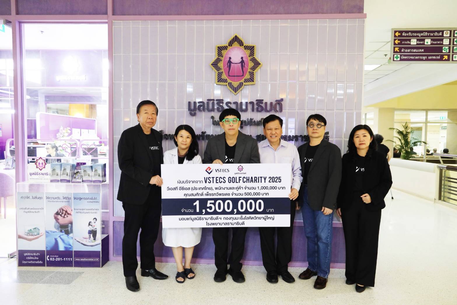 โดยมี คุณสมศักดิ์ เพ็ชรทวีพรเดช ประธานเจ้าหน้าที่บริหาร บริษัท วีเอสที อีซีเอส (ประเทศไทย) จำกัด พร้อมด้วยคณะผู้บริหาร มอบเงินบริจาค จำนวน 1,500,000 บาท จากกิจกรรม “VST ECS GOLF CHARITY 2025” ซึ่งเป็นเงินสมทบที่ได้รับการสนับสนุนจากบริษัทคู่ค้าร่วมกับผู้บริหารและพนักงาน โดยได้รับเกียรติจาก รศ.นพ.สุภร จันท์จารุณี และ รศ.พญ.พิมพ์ใจ นิภารักษ์ อาจารย์ประจำหน่วยโลหิตวิทยา ภาควิชาอายุรศาสตร์ คณะแพทยศาสตร์ โรงพยาบาลรามาธิบดี เป็นผู้รับมอบ ณ ห้องรับรองมูลนิธิรามาธิบดีฯ ชั้น 4 อาคารสมเด็จพระเทพรัตน์ โรงพยาบาลรามาธิบดี