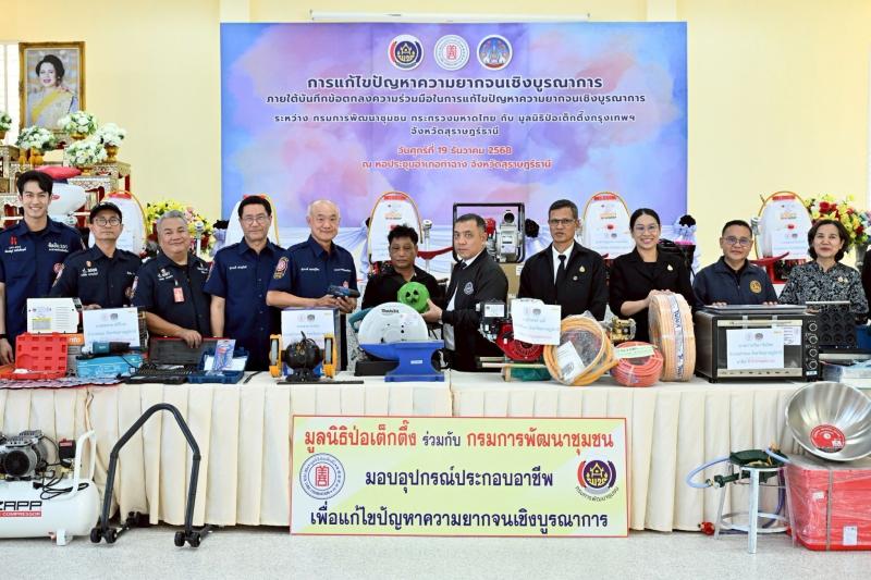 โครงการแก้ไขปัญหาความยากจนเชิงบูรณาการ มูลนิธิป่อเต็กตึ๊ง ได้สนับสนุนอุปกรณ์ประกอบอาชีพ ช่วยเหลือครัวเรือนยากจน ตามบันทึกข้อตกลงความร่วมมือแก้ไขปัญหาความยากจน ระหว่างกรมการพัฒนาชุมชนและมูลนิธิป่อเต็กตึ๊ง ซึ่งมูลนิธิฯ ได้จัดงบประมาณดำเนินการเพื่อจัดหาวัสดุอุปกรณ์การประกอบอาชีพมอบให้แก่ครัวเรือนยากจน ให้สามารถประกอบอาชีพเลี้ยงตนเองและครอบครัว โดยได้ดำเนินการไปแล้ว 3 ระยะ โดยกลุ่มเป้าหมายแรก ระยะที่ 1 ดำเนินการในพื้นที่ภาคกลางแล้วจำนวน 17 จังหวัด รวม 98 ครัวเรือน ระยะที่ 2 ได้ดำเนินการในพื้นที่ภาคเหนือแล้วจำนวน 17 จังหวัด รวม 230 ครัวเรือน ระยะที่ 3 ได้ดำเนินการในพื้นที่จังหวัด ทางภาคตะวันออกเฉียงเหนือ 20 จังหวัด รวม 485 ครัวเรือน นอกจากนี้ยังได้มอบอุปกรณ์ประกอบอาชีพให้กับครัวเรือนยากจนผู้ประสบอุทกภัย ประจำปี พ.ศ.2567 ในพื้นที่จังหวัดเชียงใหม่ และ จังหวัดเชียงราย อีกจำนวน 57 ครัวเรือน รวมจำนวนครัวเรือนยากจนที่มูลนิธิป่อเต็กตึ๊งได้สร้างอาชีพ สร้างชีวิต ด้วยการมอบอุปกรณ์ประกอบอาชีพแล้วทั้งสิ้น 870 ครัวเรือน คิดเป็นมูลค่ากว่า 17 ล้านบาท และในขณะนี้ได้พิจารณาดำเนินการพื้นที่ภาคใต้ รวม 14 จังหวัด ได้แก่ ชุมพร สุราษฎร์ธานี ระนอง นครศรีธรรมราช พังงา พัทลุง สงขลา ตรัง สตูล กระบี่ ภูเก็ต ปัตตานี ยะลา และนราธิวาส