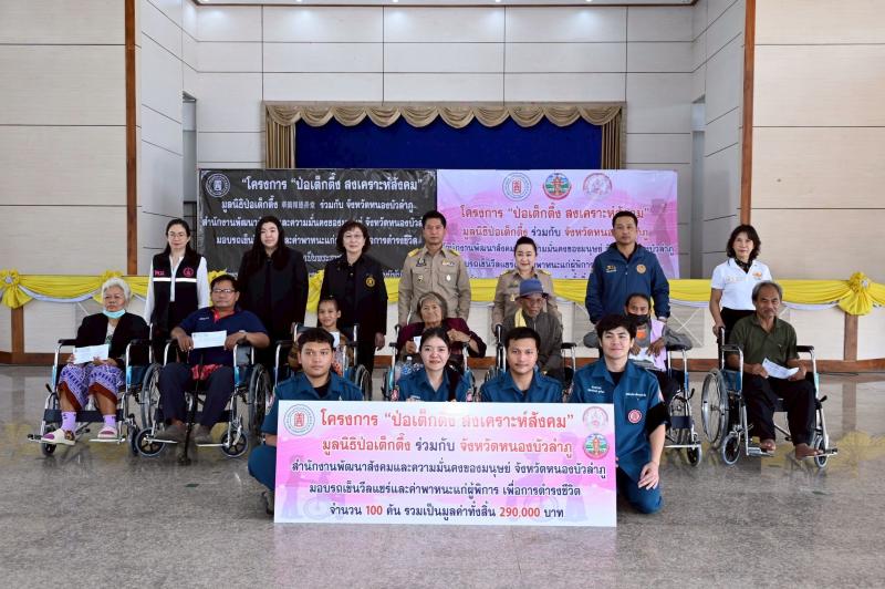 มูลนิธิป่อเต็กตึ๊ง ขยายความช่วยเหลือผู้พิการด้อยโอกาส มอบรถเข็นวีลแชร์พร้อมค่าพาหนะแก่ผู้พิการ 100 คน ในพื้นที่จังหวัดหนองบัวลำภู เพื่อถวายเป็นพระราชกุศลแด่สมเด็จพระนางเจ้าสิริกิติ์ พระบรมราชินีนาถ พระบรมราชชนนีพันปีหลวง ณ ที่ว่าการอำเภอเมืองหนองบัวลำภู อำเภอเมือง จังหวัดหนองบัวลำภู