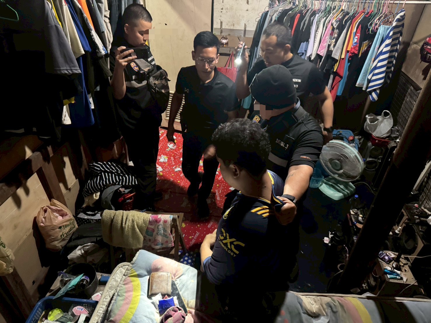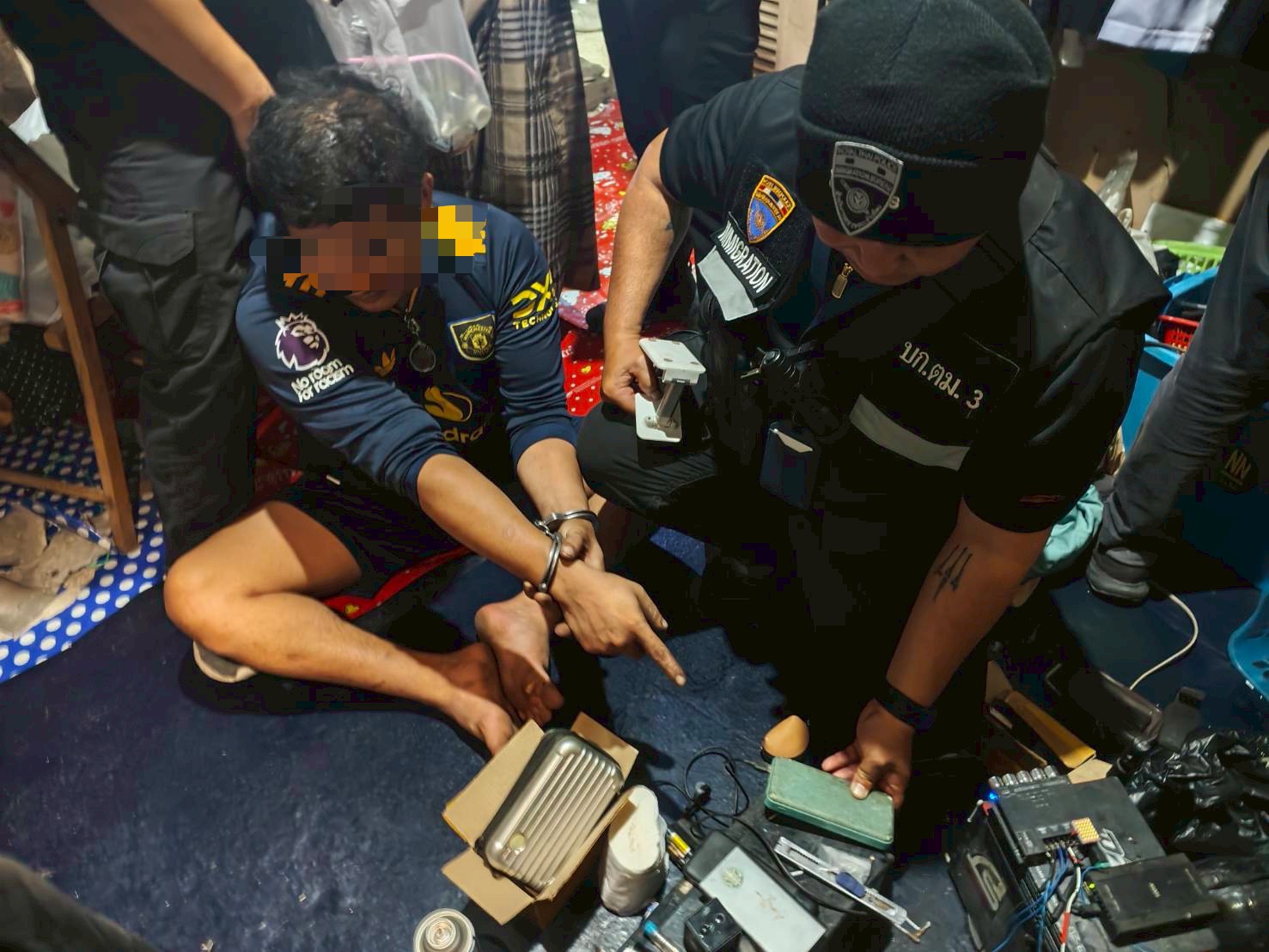 เมื่อวันที่ 16 ม.ค.69 เวลาประมาณ 20.00 น. ภายใต้การอำนวยการของ พ.ต.อ.ณัฐกิตต์ มีสุข ผกก.ตม.จว.ปทุมธานี พ.ต.ท.พีรพัฒน์ คล้ายคลึง รอง ผกก.ตม.จว.ปทุมธานี และ พ.ต.ท.หญิง สุภางค์กาญจน์ มนตรีพิศาล สว.ตม.จว.ปทุมธานี สั่งการให้ เจ้าหน้าที่ชุดสืบสวน ตม.จว.ปทุมธานี ระดมกวาดล้างอาชญากรรมตามนโยบายศูนย์ปราบปรามคนร้ายข้ามชาติและเข้าเมืองโดยผิดกฎหมาย สำนักงานตำรวจแห่งชาติ (ศปชก.ตร.)