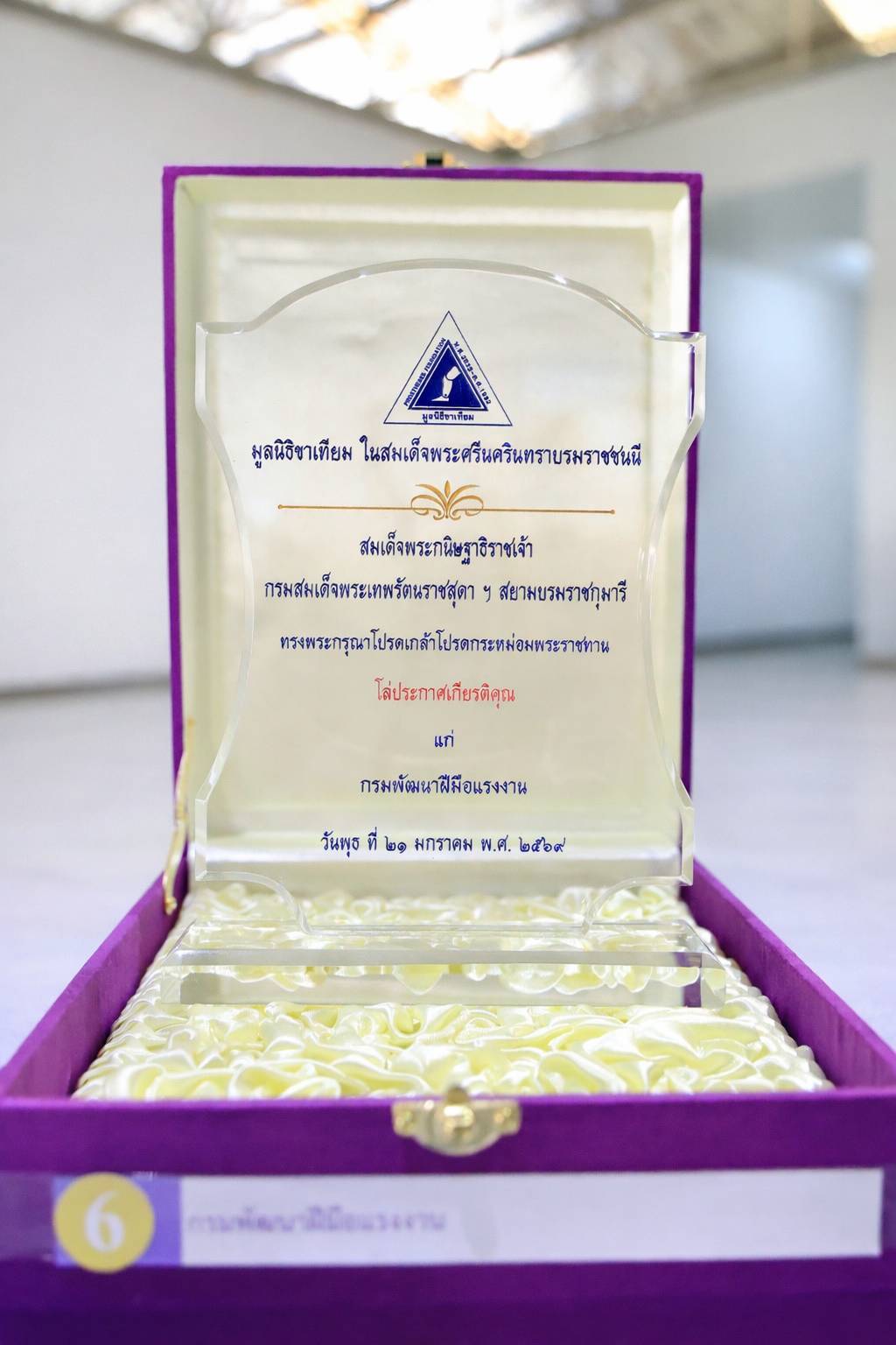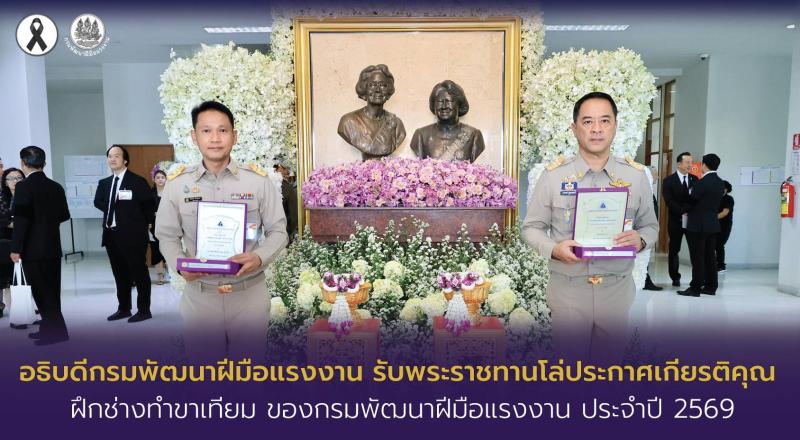 อธิบดีกรมพัฒนาฝีมือแรงงาน รับพระราชทานโล่ประกาศเกียรติคุณ ฝึกช่างทำขาเทียม ของกรมพัฒนาฝีมือแรงงาน ประจำปี 2569