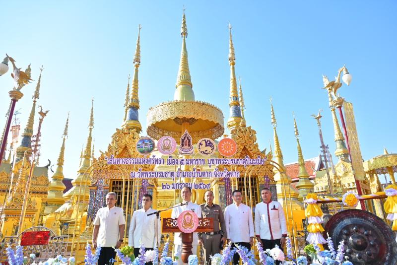 นายชัยพล สุขเอี่ยม อธิบดีกรมการศาสนา เปิดเผยว่า กรมการศาสนา กระทรวงวัฒนธรรม กำหนดเปิดกิจกรรม “เส้นทางธรรมแห่งศรัทธา เมือง 5 มหาราช บูชาพระบรมธาตุปีมะเมีย จังหวัดตาก” ภายใต้โครงการเส้นทางท่องเที่ยวในมิติศาสนา ประจำปีงบประมาณ พ.ศ. 2569 โดยเปิดเส้นทางอย่างยิ่งใหญ่ร่วมกับเครือข่ายวัฒนธรรมในพื้นที่ ระหว่างวันที่ 25-26 มกราคม 2569 นี้ ณ แหล่งท่องเที่ยวทางวัฒนธรรม อำเภอเมืองตาก อำเภอสามเงา และโบราณสถานวัดพระบรมธาตุ ตำบลเกาะตะเภา อำเภอบ้านตาก จังหวัดตาก เพื่อกระตุ้นเศรษฐกิจการท่องเที่ยวเมืองรองตามนโยบายรัฐบาล และขับเคลื่อนนโยบาย “ไท ไทย” (Unseen Thai Thai) นำทุนทางศาสนามาแปลงเป็นทุนทางเศรษฐกิจเพื่อสร้างรายได้สู่ชุมชนอย่างยั่งยืน จังหวัดตาก ถือเป็นดินแดนที่มีความสำคัญทางประวัติศาสตร์และศรัทธาอย่างเข้มแข็ง