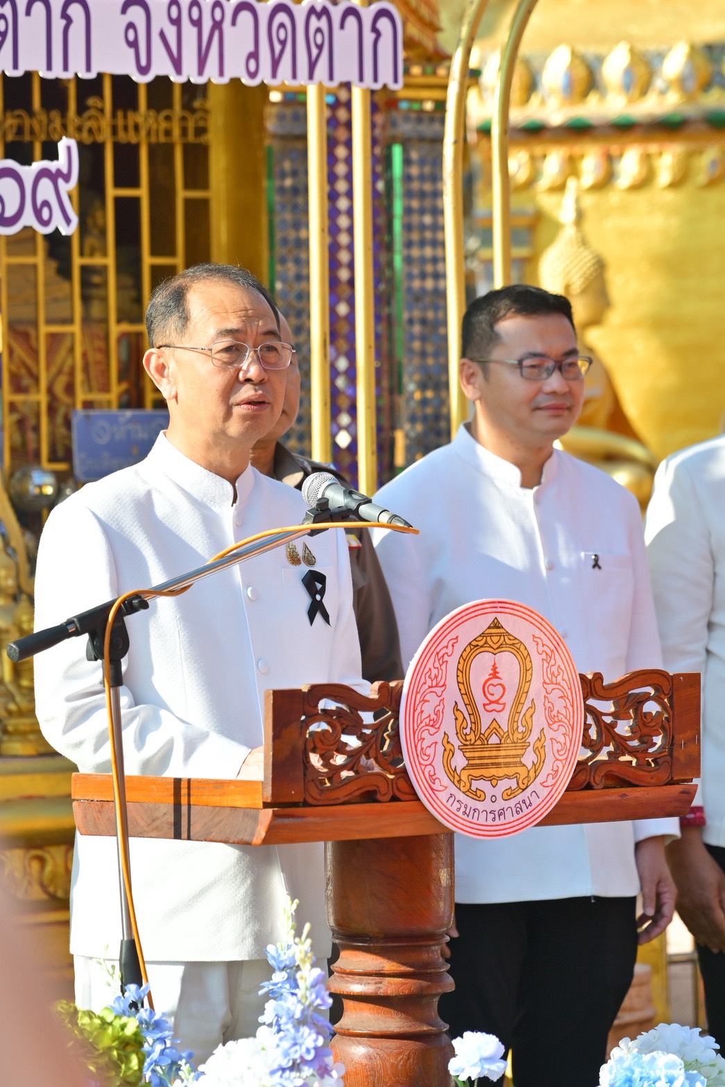 วันจันทร์ที่ 26 มกราคม 2569 เวลา 07.30 น. กรมการศาสนา กระทรวงวัฒนธรรม จัดพิธีตักบาตรและเจริญพระพุทธมนต์ร่วมกับจังหวัดตาก หน่วยงานภาครัฐ และภาคีเครือข่ายวัฒนธรรม ในพื้นที่จังหวัดตากและจังหวัดใกล้เคียง และพิธีเปิดเส้นทางธรรมแห่งศรัทธา เมือง 5 มหาราช บูชาพระบรมธาตุปีมะเมีย จังหวัดตาก โดยมีนายชัยพล สุขเอี่ยม อธิบดีกรมการศาสนา เป็นประธานในพิธี พร้อมด้วย นายพจนาถ ปัญญาศิลป์ รองอธิบดีกรมการศาสนา วัฒนธรรมจังหวัด นายสิงคาร อ้นมั่น ปลัดอาวุโส หัวหน้าส่วนราชการ ผู้มีเกียรติ ประชาชน สื่อมวลชน และเจ้าหน้าที่กรมการศาสนา เข้าร่วม ณ บริเวณหน้าเจดีย์พระบรมธาตุ วัดพระบรมธาตุ ตำบลเกาะตะเภา อำเภอบ้านตาก จังหวัดตาก