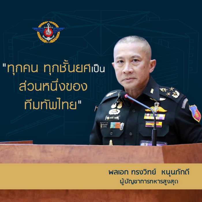 พลเอก ทรงวิทย์ หนุนภักดี ผู้บัญชาการทหารสูงสุด มอบเจตนารมณ์ในการปฏิบัติงานแก่กำลังพล กองบัญชาการกองทัพไทย โดยมีความห่วงใย และเน้นย้ำให้ความสำคัญแก่กำลังพลผู้ปฏิบัติงานอยู่เบื้องหลัง เปรียบดังคนปิดทองหลังพระ ควรให้คุณค่าทหารทุกคนซึ่งมีความเท่าเทียมกัน โดย ยศ ตำแหน่ง มีไว้ทำงานเท่านั้น นอกจากนี้ต้องเพิ่มโอกาสให้กำลังพลทุกชั้นยศ ทุกวัย ทุกเพศ ในการทำงานให้กับพี่น้องประชาชน เพราะทุกคน ทุกชั้นยศ เป็นส่วนหนึ่งของทีมทัพไทย รวมทั้งต้องดูแลคนที่จะเป็นผู้นำในอนาคตและคนที่ช่วยสร้างพวกเขาด้วย
